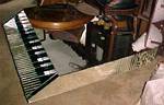 This is a truly unique vintage all-mirrored baby grand coffee or cocktail table. Bought from an exclusive million-dollar estate in Irvington, NY, it was from a piano player's home. The estate would not mention the name. The entire piano is extremely heavy and is all wood under the mirror. The top is one solid piece and even the legs are mirrored. |